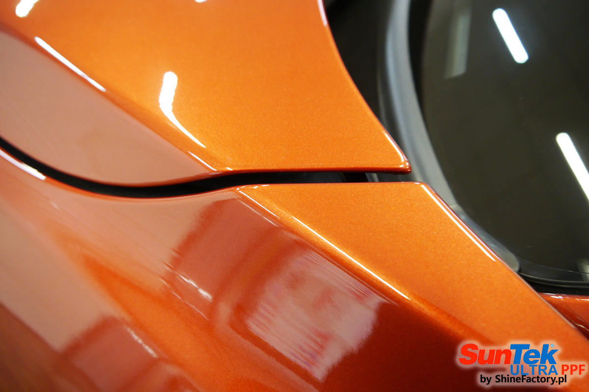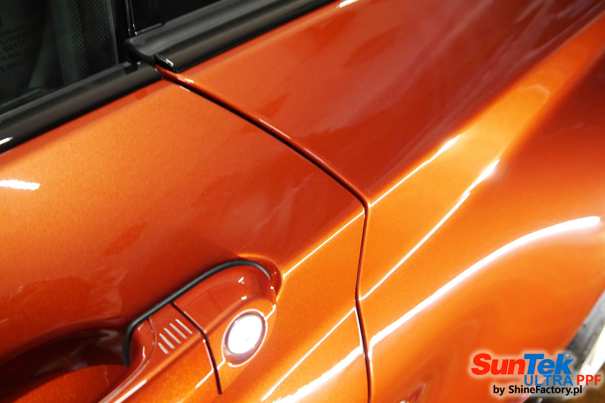 Oklejone zostało praktycznie całe auto w celu ochrony przed wszelkimi uszkodzeniami jak np. odpryski od kamieni, piaskowanie od żwiru drogowego, mocniejszymi rysami, obiciami czy nawet drobnymi obcierkami parkingowymi.