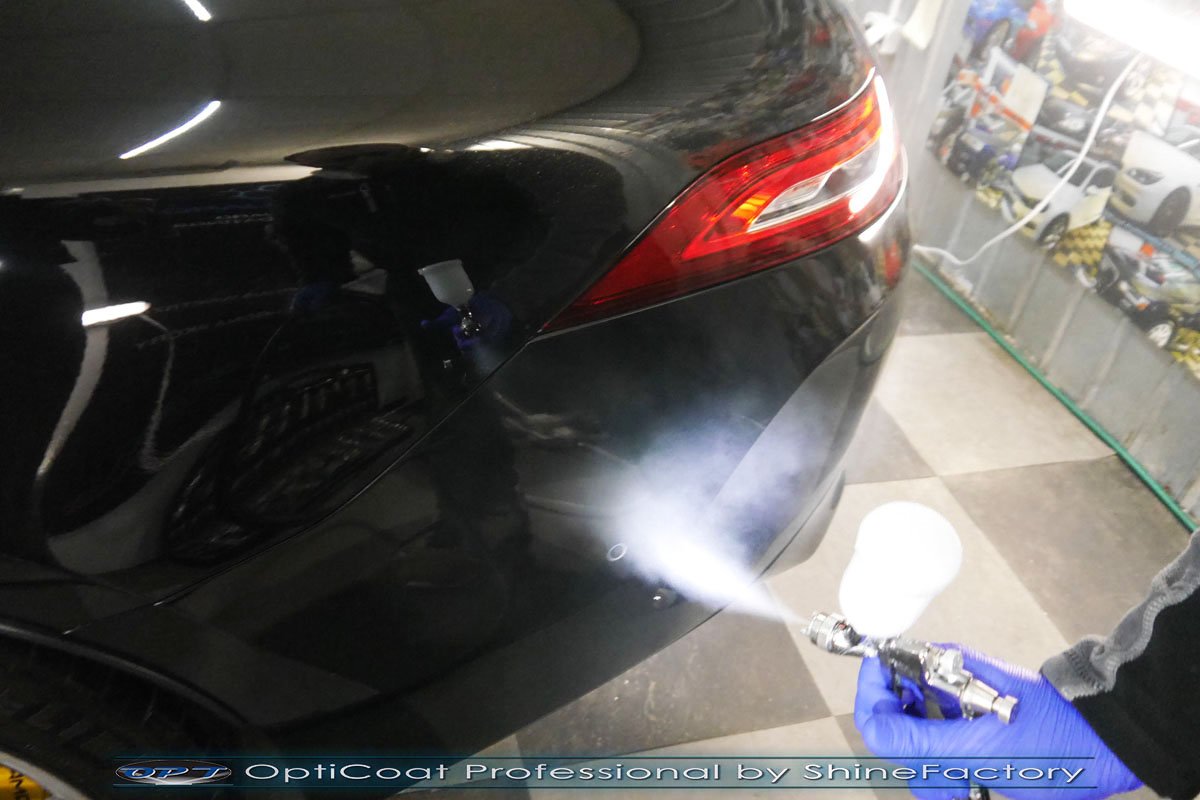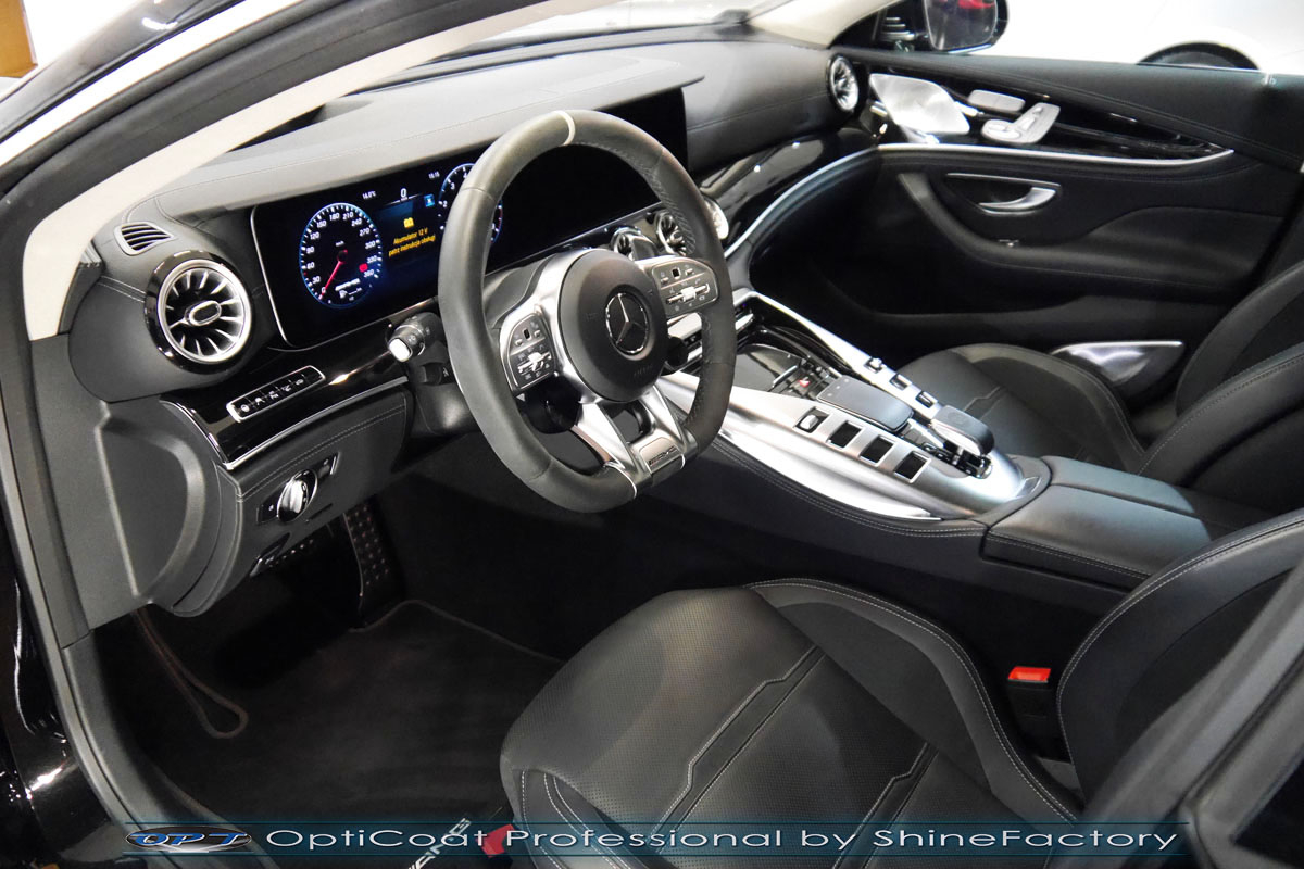 Połączenie bezbarwnych samo-regeneracyjnych folii oraz powłok ceramicznych staje się powoli standardem w idealnym zabezpieczeniu nowego auta. Tym razem mieliśmy przyjemność zająć się Mercedesem AMG GT z niedużym przebiegiem. Auto zostało maksymalnie zabezpieczone przed wszystkimi możliwymi uszkodzeniami. Wykorzystane do tego zostały najlepsze na rynku bezbarwne folie ochronne SunTek Ultra oraz natryskowa ceramika OptiCoat PRO. Oczywiście prace rozpoczęliśmy od dokładnego oczyszczenia całego nadwozia z naleciałości oraz korekty lakieru w celu usunięcia niedoskonałości. Następnie przystąpiliśmy do aplikacji bezbarwnych folii ochronnych na najbardziej narażone na mocne uszkodzenia el. auta, oczywiście zdecydowaliśmy się jak zawsze wybrać produkt bezkonkurencyjny i nowoczesny na rynku, czyli folie regeneracyjne SunTek Ultra PPF. Po aplikacji folii przeszliśmy do zabezpieczania wszelkich el. auta powłokami, zaaplikowaliśmy w natryskowy sposób grubą warstwę powłoki 9H+ Optimum OptiCoat Professional potwierdzoną testami TUV, pokrywając ją dla maksymalnego efektu wizualnego powłoką GlossCoat, która na końcu została utwardzona w odpowiedniej temp. lampami IR. Oczywiście zajęliśmy się, także zabezpieczeniem pakietem powłok wszelkich innych elementów jak szyby (Gtechniq G1), felgi (DLUX), lampy czy elementy nielakierowane, a także całe wnętrze wraz z zaimpregnowaniem delikatnych skór. Po kilkudziesięciu godzinach pracy Mercedes nabrał perfekcyjnego wyglądu, połysku oraz co najważniejsze najmocniejszej praktycznie pancernej ochrony na lata. Zapraszamy do szerokiej fotorelacji! Oklejone zostały przednie elementy auta głównie w celu ochrony przed mocnymi mechanicznymi uszkodzeniami jak np. odpryski od kamieni, piaskowanie od żwiru drogowego, mocniejszymi rysami, obiciami czy nawet drobnymi obcierkami parkingowymi.