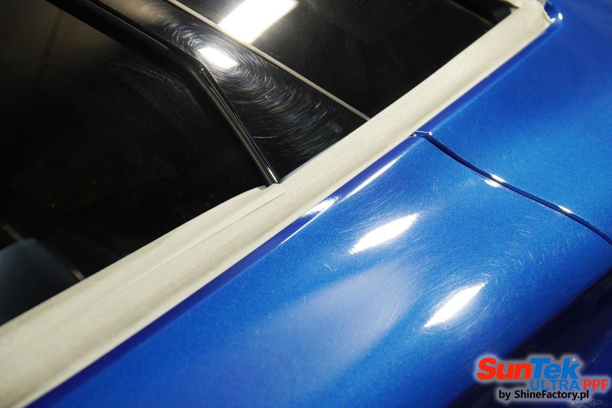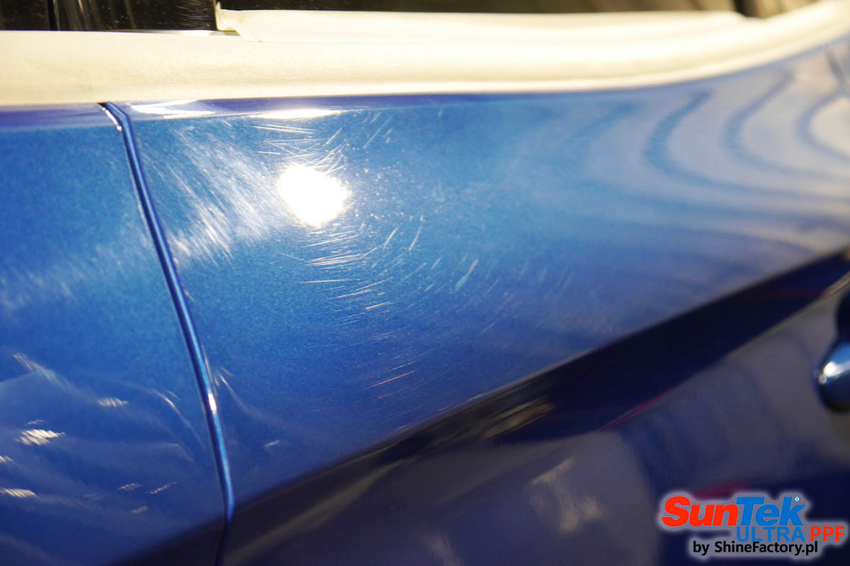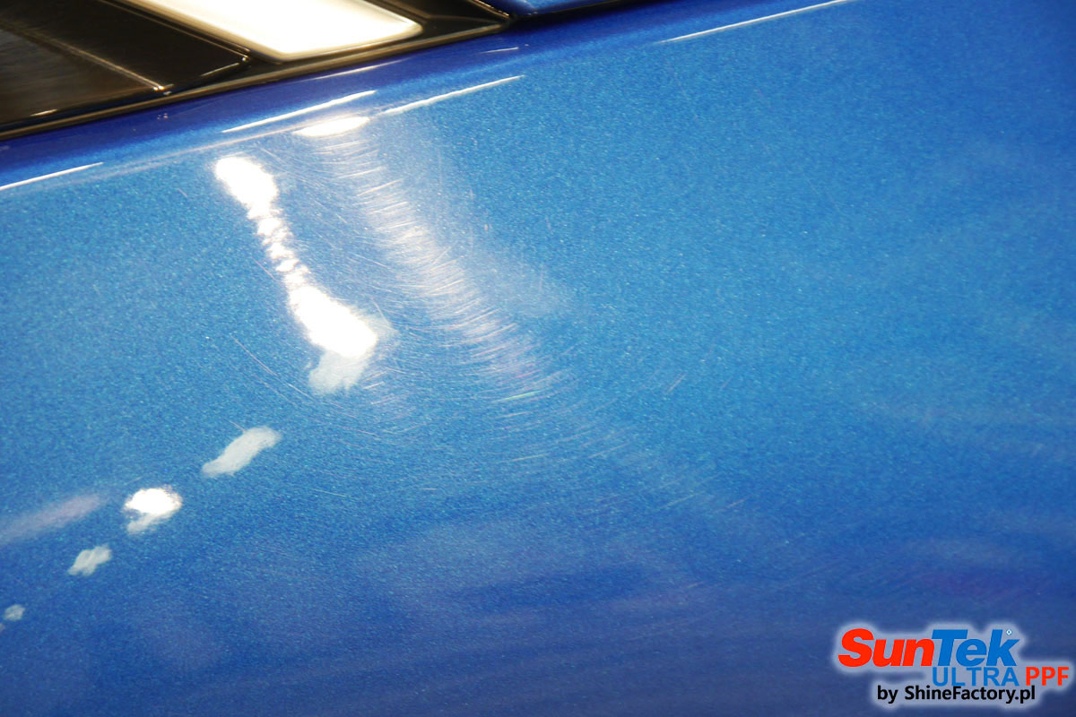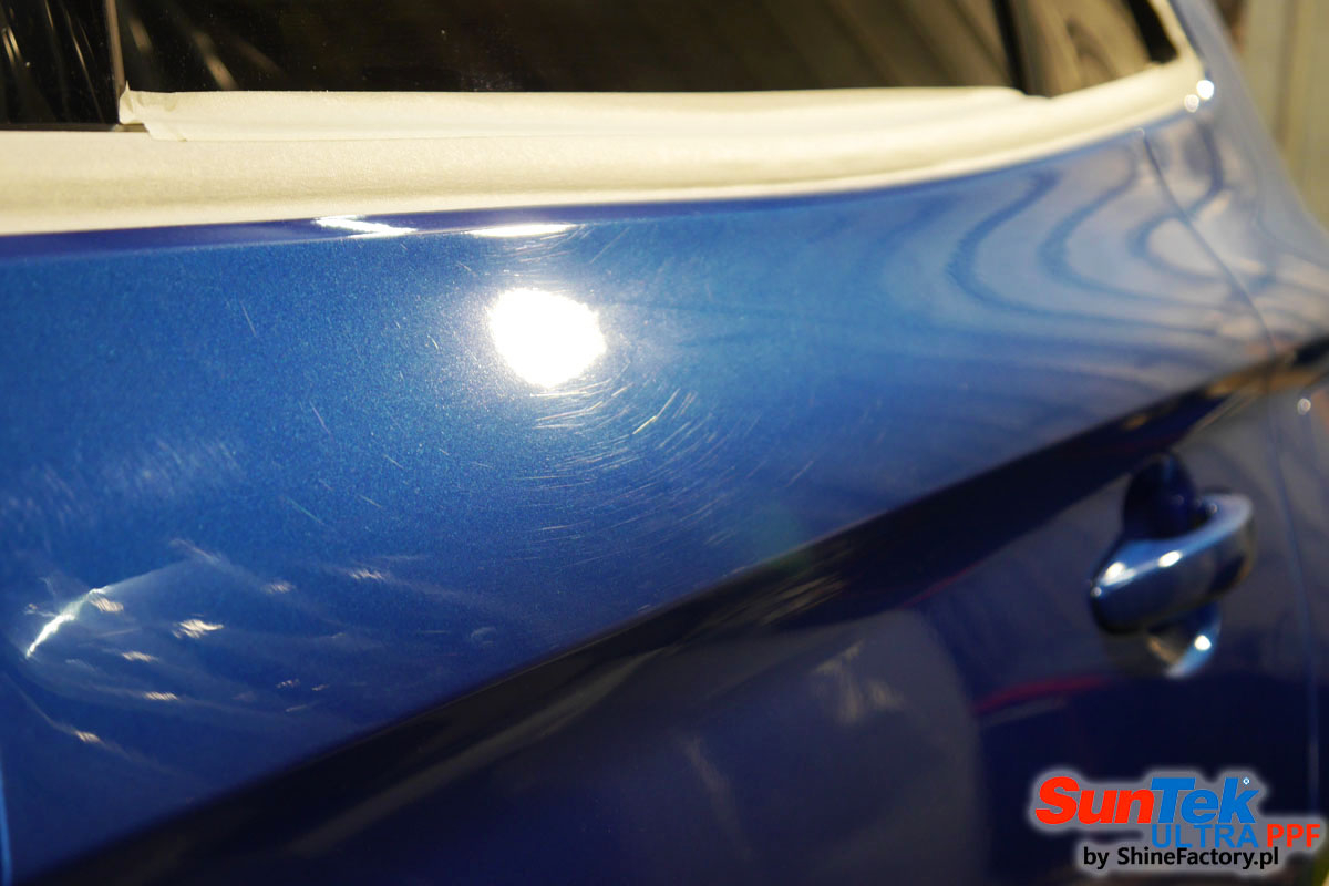 Oklejone zostało praktycznie całe auto w celu ochrony przed wszelkimi uszkodzeniami jak np. odpryski od kamieni, piaskowanie od żwiru drogowego, mocniejszymi rysami, obiciami czy nawet drobnymi obcierkami parkingowymi.