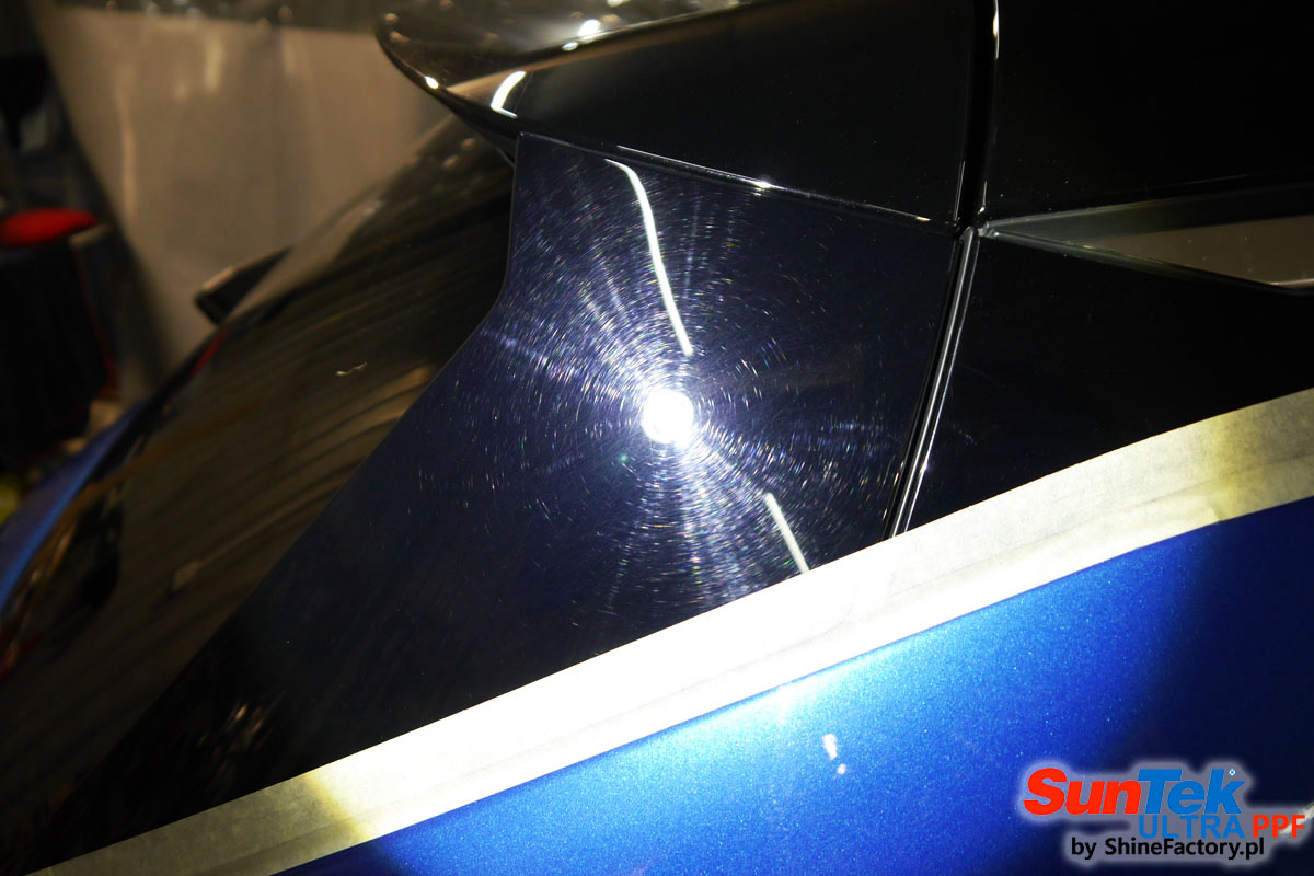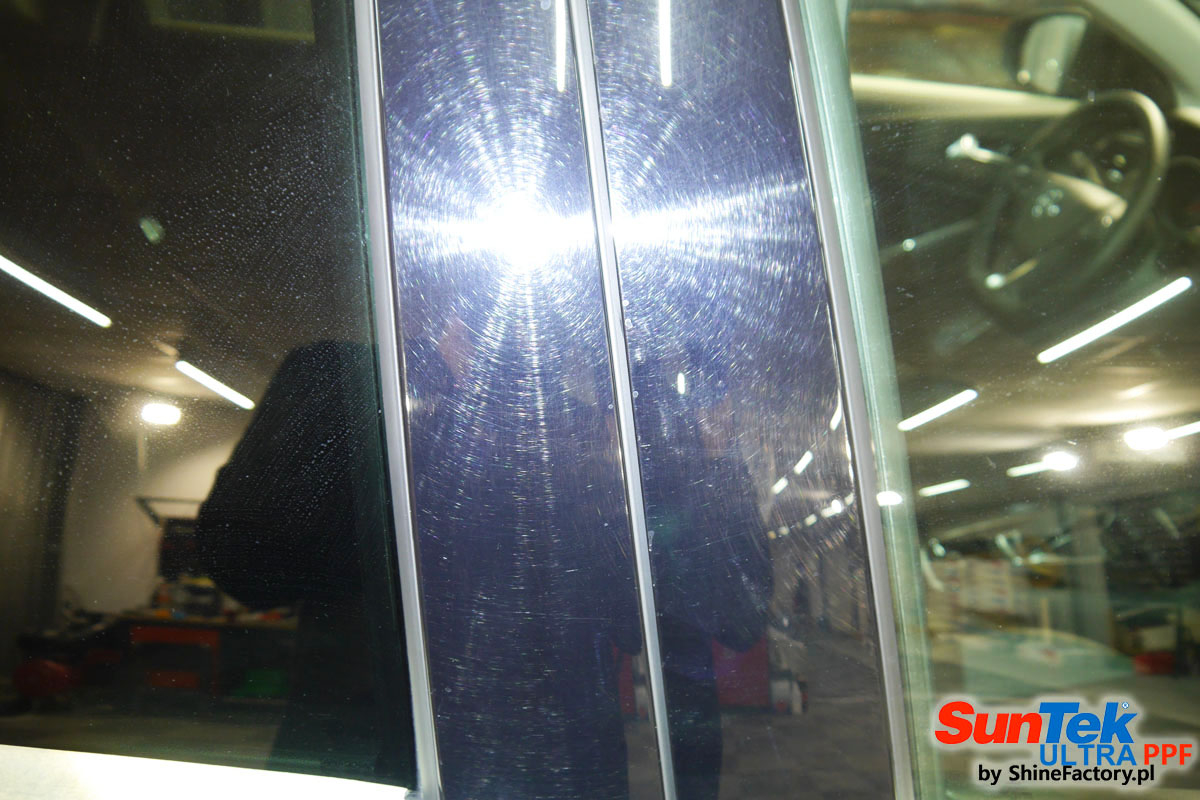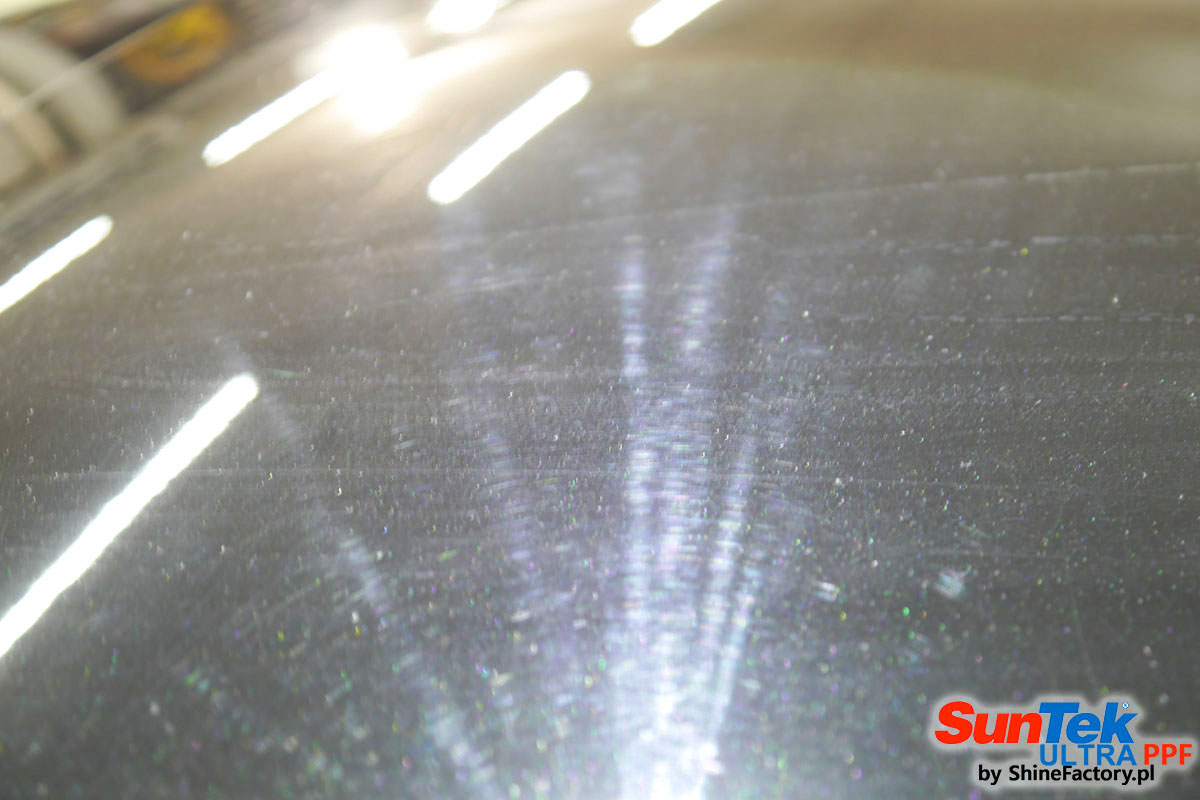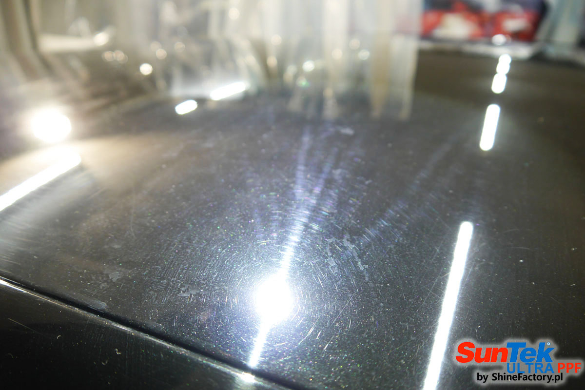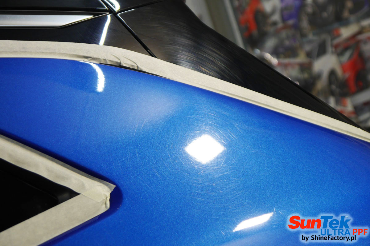 Oklejone zostało praktycznie całe auto w celu ochrony przed wszelkimi uszkodzeniami jak np. odpryski od kamieni, piaskowanie od żwiru drogowego, mocniejszymi rysami, obiciami czy nawet drobnymi obcierkami parkingowymi.