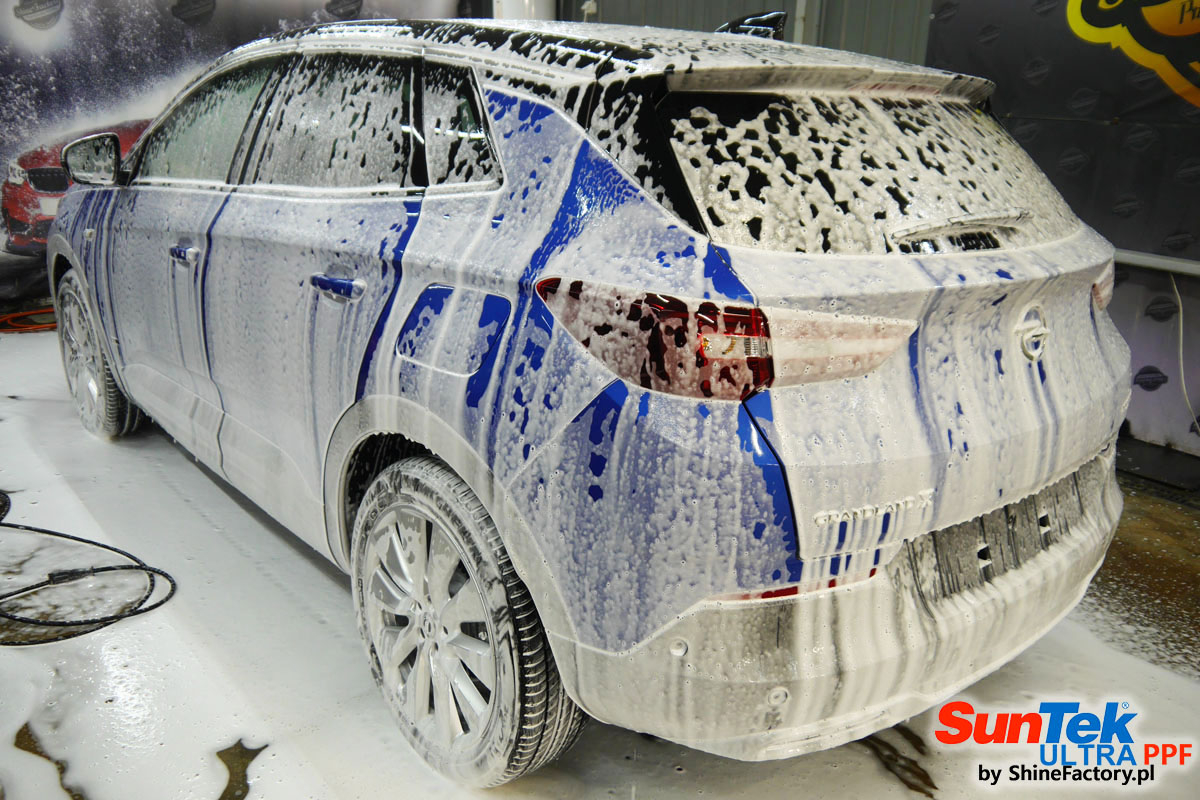 Zabezpieczenie frontów aut bezbarwnymi foliami ochronnymi staje się powoli standardem, coraz częściej także zabezpieczane w ten sposób są auta w całości co daje do tego czasu nieosiągalne perfekcyjne zabezpieczenie i efekt wizualny. Tym razem mieliśmy przyjemność zająć się nowym Oplem. Decyzja wz. z zabezpieczeniem padła na bezkompromisowe połączanie znakomitych bezbarwnych folii ochronnych SunTek Ultra PPF z 10 letnią gwarancją oraz pakietu powłok ceramicznych. Standardowo prace zaczęliśmy od bardzo dokładnego oczyszczenia nadwozia z wszelkich naleciałości. Kolejno zajęliśmy się inspekcją lakieru i skorygowaniem oraz doprowadzeniem go do możliwej perfekcji. Po przygotowaniu przeszliśmy do zabezpieczenia każdego cm auta, najpierw aplikując bezbarwne folie ochronne. Folie zazwyczaj aplikuje się na najbardziej narażone el. auta jak przód, tym razem zdecydowaliśmy się praktycznie całe auto pokryć najlepszymi na świecie regeneracyjnymi foliami SunTek Ultra aby uzyskać 100% ochronę lakieru, który będzie całkowicie izolowany od środowiska zewnętrznego i nic nie będzie wstanie go uszkodzić. Po aplikacji folii przeszliśmy do zabezpieczania wszelkich el. auta powłokami, zaaplikowaliśmy pakiet powłok na całe auto, folie, szyby (Gtechniq G1), felgi (DLUX), elementy nielakierowane, a także całe wnętrze wraz z zaimpregnowaniem delikatnych skór. Po kilkudziesięciu godzinach pracy Mercedes nabrał perfekcyjnego wyglądu, połysku oraz co najważniejsze najmocniejszej praktycznie pancernej ochrony na lata. Zapraszamy do szerokiej fotorelacji!