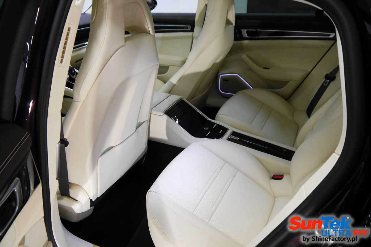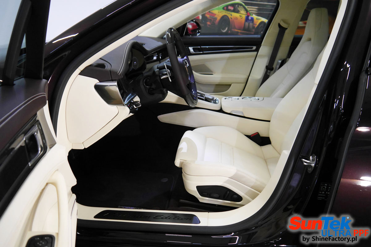 Zabezpieczenie frontów aut bezbarwnymi foliami ochronnymi staje się powoli standardem, coraz częściej także zabezpieczane w ten sposób są auta w całości co daje do tego czasu nieosiągalne perfekcyjne zabezpieczenie i efekt wizualny. Tym razem mieliśmy przyjemność zająć się Porsche Panamera. Decyzja wz. z zabezpieczeniem padła na bezkompromisowe połączanie znakomitych bezbarwnych folii ochronnych SunTek Ultra PPF z 10 letnią gwarancją oraz pakietu powłok ceramicznych. Standardowo prace zaczęliśmy od bardzo dokładnego oczyszczenia nadwozia z wszelkich naleciałości. Kolejno zajęliśmy się inspekcją lakieru i skorygowaniem oraz doprowadzeniem go do możliwej perfekcji. Po przygotowaniu przeszliśmy do zabezpieczenia każdego cm auta, najpierw aplikując bezbarwne folie ochronne. Folie zazwyczaj aplikuje się na najbardziej narażone el. auta jak przód, tym razem zdecydowaliśmy się praktycznie całe auto pokryć najlepszymi na świecie regeneracyjnymi foliami SunTek Ultra aby uzyskać 100% ochronę lakieru, który będzie całkowicie izolowany od środowiska zewnętrznego i nic nie będzie wstanie go uszkodzić. Po aplikacji folii przeszliśmy do zabezpieczania wszelkich el. auta powłokami, zaaplikowaliśmy pakiet powłok na całe auto, folie, szyby (Gtechniq G1), felgi (DLUX), elementy nielakierowane, a także całe wnętrze wraz z zaimpregnowaniem delikatnych skór. Po kilkudziesięciu godzinach pracy Porsche nabrało perfekcyjnego wyglądu, połysku oraz co najważniejsze najmocniejszej praktycznie pancernej ochrony na lata. Zapraszamy do szerokiej fotorelacji!