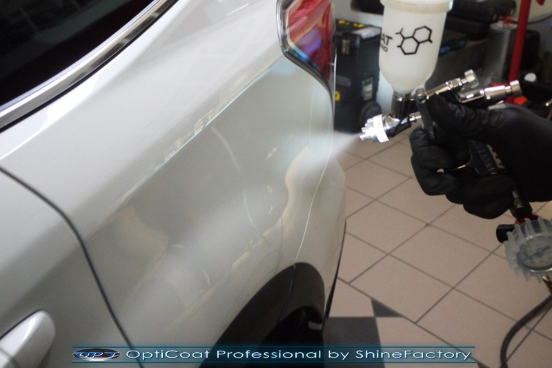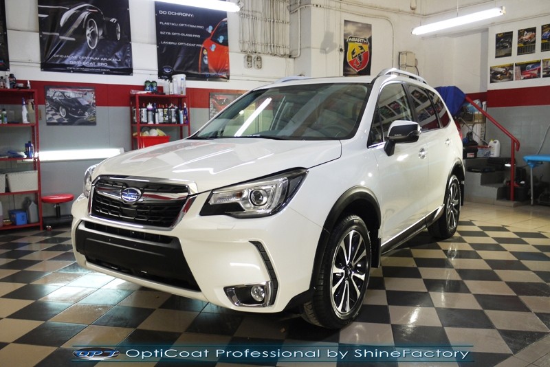 Witamy i zapraszamy do fotorelacji z zabezpieczenia nowego Subaru Forester w białym perłowym lakierze, które zostało nam powierzone w celu jak najgrubszego i jak najmocniejszego możliwego zabezpieczenia powłoką ceramiczną. Auto choć dojechało do nas wprost z salonu, prace rozpoczęliśmy od przygotowania powierzchni w szczególności lakieru czyli np. usunięciu miejscowych mikrorys oraz wżeru po ptasim odchodzie. Następnie w celu najmocniejszej możliwej ochrony na lakier trafiła zaaplikowana w innowacyjny natryskowy sposób powłoka ceramiczna OptiCoat Professional 9H+ oparta na SiC z dodatkową warstwą powłoki GlossCoat zapewniając maksymalną grubość i efektywność działania na wiele lat. Następnym naszym zadaniem było zaimpregnowanie całego wnętrza, głównie skupiając się na skórach, które zostały zaimpregnowane kosmetykami najwyższej ligi przed nadmiernym brudzeniem oraz pękaniem. Nie zapomnieliśmy, także zająć się dokładnie komorą silnika, felgami czy nadkolami, które zostały w każdym elemencie pokryte dedykowanymi powłokami ochronnymi. Po zabezpieczeniu pakietem powłok wszelkich innych elementów auta jak szyby, koła, elementy nielakierowane itp itd oraz wygrzaniu w odpowiedniej temperaturze lampami IR, auto zyskało idealny wygląd, bardzo mocną ochronę a także zminimalizowane brudzenie. Zapraszamy do pełnej relacji!