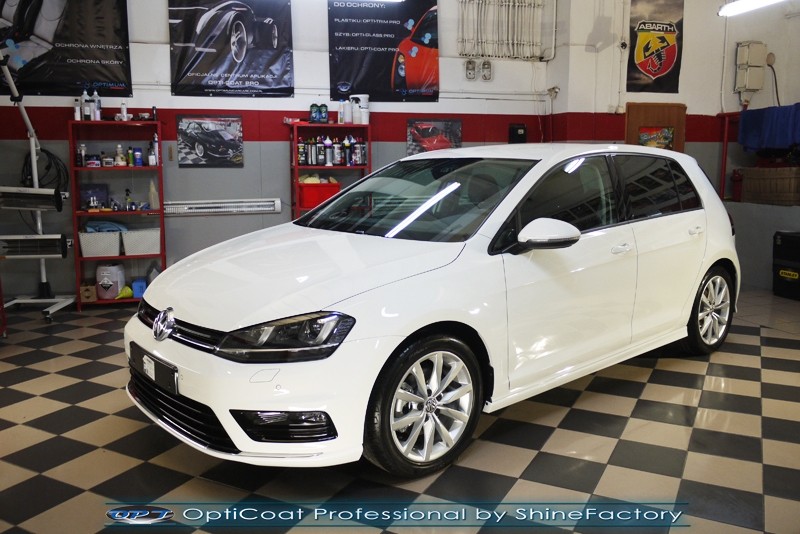 Nowy Volkswagen Golf w niemetalicznym białym lakierze został nam powierzony zaraz po wyjeździe z salonu w celu jak najmocniejszego zabezpieczenia każdego elementu auta na nadchodzące trudne warunki. Prace zaczęliśmy od detailingu nadkoli oraz wnętrza felg, zabezpieczyliśmy powłokami zaciski hamulcowe oraz felgi od wewnątrz. Następnie całe auto zostało dokładnie oczyszczone z zabrudzeń oraz fabrycznych zabezpieczeń. Lakier ogólnie posiadający miejscowe uszkodzenia, został poddany lekkiej korekcie oraz dokładnie odtłuszczony. Następnie przeszliśmy do aplikacji powłok na każdy element auta jak lakier, szyby, plastiki, felgi itp itd. Najważniejsze, na sam lakier zaaplikowaliśmy w skomplikowany natryskowy sposób maksymalnie grubą warstwę kompozytu ceramicznego (100% powłoki na aucie) 9H+ opartego na SiC Optimum OptiCoat Professional połączoną z powłoką GlossCoat, która zapewniła maksymalny połysk i ochronę na bardzo długi czas. Po aplikacji, całe auto zostało wygrzane lampami IR w odpowiedniej temperaturze w celu utwardzenia powłok. Oczywiście zajęliśmy się także komorą silnika oraz wnętrzem auta, które zabezpieczyliśmy kosmetykami z najwyższej półki a skóry porządnie zaimpregnowaliśmy. Zapraszamy do fotorelacji.