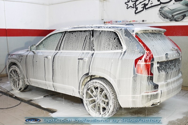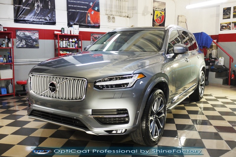 Dziś chcemy przedstawić relację z przykładowego idealnego zabezpieczenia nowego auta. Nowe Volvo zostało nam powierzone wprost po wyjeździe z salonu w celu jak najmocniejszego zabezpieczenia każdego elementu auta. Prace zaczęliśmy od detailingu nadkoli oraz wnętrza felg, zabezpieczyliśmy powłokami zaciski hamulcowe oraz felgi od wewnątrz. Następnie całe auto zostało dokładnie oczyszczone z zabrudzeń oraz fabrycznych zabezpieczeń. Lakier ogólnie posiadający miejscowe uszkodzenia, został poddany lekkiej korekcie oraz dokładnie odtłuszczony. Następnie przeszliśmy do aplikacji powłok na każdy element auta jak lakier, szyby, plastiki, felgi itp itd. Najważniejsze, na sam lakier zaaplikowaliśmy w skomplikowany natryskowy sposób maksymalnie grubą warstwę kompozytu ceramicznego (100% powłoki na aucie) 9H+ opartego na SiC Optimum OptiCoat Professional połączoną z powłoką GlossCoat, która zapewniła maksymalny połysk i ochronę na bardzo długi czas. Po aplikacji, całe auto zostało wygrzane lampami IR w odpowiedniej temperaturze w celu utwardzenia powłok. Oczywiście zajęliśmy się także komorą silnika oraz wnętrzem auta, które zabezpieczyliśmy kosmetykami z najwyższej półki a jasne skóry porządnie zaimpregnowaliśmy. Zapraszamy do ciekawej fotorelacji.