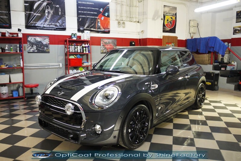 Witamy! Tym razem chcemy pokazać prace nad Mini Cooper, które zostało nam oddane z niewielkim przebiegiem w celu kompletnego detailingu, a przede wszystkim pokrycia pakietem powłok ochronnych. Standardowo prace rozpoczęliśmy od zdjęcia kół, dzięki czemu mogliśmy dokładnie zająć się i zabezpieczyć nadkola oraz felgi od wewnątrz. Następnie oczyściliśmy i wyglinkowaliśmy nadwozie. Po inspekcji lakieru okazało się, że niestety jest w zaskakująco złym stanie jak na symboliczny przebieg, musieliśmy go koniecznie poprawić przed pokryciem powłoki. Po odświeżeniu lakieru zaaplikowaliśmy grubą warstwę natryskowej powłoki certyfikowanej przez TUV- OptiCoat Professional z dodatkową warstwą GlossCoat. Następnie pokryliśmy resztę elementów dedykowanymi powłokami, między innymi szyby czy felg, poddaliśmy pielęgnacji el. plastikowe i chromowane, po czym wygrzaliśmy całe auto w wysokiej temperaturze lampami IR. Całe wnętrze zostało poddane kompleksowemu detailingowi, jasne skóry które nigdy nie były zabezpieczane zostały oczyszczone i zaimpregnowane, podobnie reszta elementów. Nie pominęliśmy także komory silnika. Mini po kilku dniach prac nabrało idealnego wyglądu i ochrony na bardzo długi czas co ułatwi do maksimum utrzymanie auta w idealnym stanie na lata. Zapraszamy do relacji!