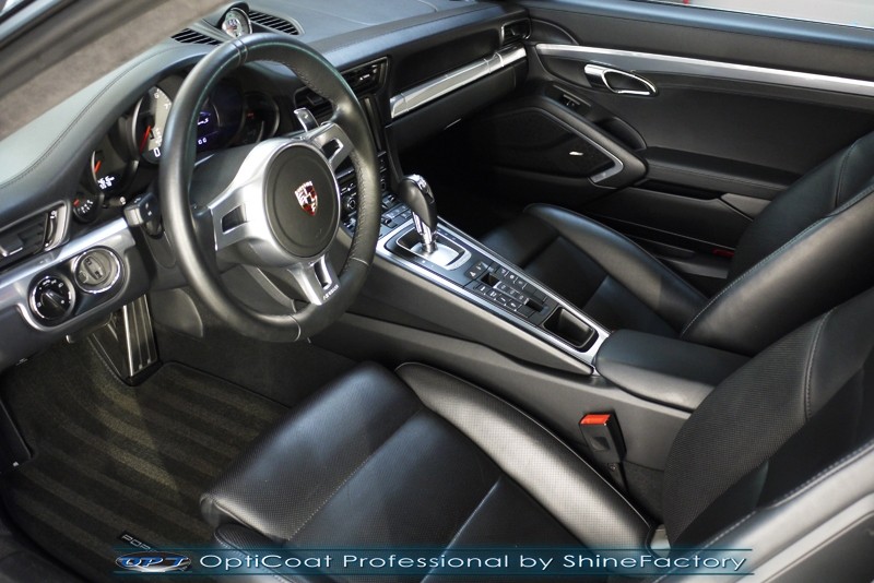 Witamy! Zapraszamy do kolejnej w tym miesiącu fotorelacji z Porsche 911, tym razem wersji Turbo. Wyjątkowy egzemplarz z manualną skrzynią i niedużym przebiegiem został nam powierzony w celu przeprowadzenia kompleksowego pakietu detailngu oraz porządnego finalnego zabezpieczenia. Porsche choć na pierwszy rzut oka w dość dobrym stanie, posiadało już sporo niedoskonałości lakieru, które psuły możliwy perfekcyjny wygląd auta. Po inspekcji lakieru, wiedzieliśmy, iż po korekcie i aplikacji powłoki ceramicznej otrzymamy świetny efekt wizualny. Prace rozpoczęliśmy od zdjęć z auta kół w celu zajęcia się nadkolami, zaciskami oraz dokładnie felgami. Następnie przeszliśmy do dogłębnego oczyszczenia lakieru. Kolejno przystąpiliśmy do najbardziej czasochłonnego i najważniejszego etapu prac czyli korekty zniszczonego lakieru, usunęliśmy wszelkie niedoskonałości i zmatowienie, po kilku dniach prac lakier nabrał idealnego wyglądu oraz był gotowy do zabezpieczanie powłoką ceramiczną. Finalnie na całe auto zaaplikowaliśmy w skomplikowany natryskowy sposób maksymalnie grubą warstwę kompozytu ceramicznego 9H+ opartego na SiC Optimum OptiCoat Professional połączoną z powłoką GlossCoat, która zapewniła krystaliczny połysk i ochronę na bardzo długi czas. Oczywiście zajęliśmy się także zabezpieczeniem pakietem powłok wszelkich innych elementów jak szyby, felgi, elementy nielakierowane czy końcówki wydechu. Zajęliśmy się także kompleksowo wnętrzem auta gdzie oczyściliśmy i zabezpieczyliśmy z osobna każdy detal wraz ze skórzanymi elementami. Nie zapomnieliśmy także o komorze silnika. Po kilkudziesięciu godzinach pracy kilku osób auto nabrało perfekcyjnego wyglądu oraz najlepszej z możliwej ochrony co zapewni zminimalizowane brudzenie oraz banalne utrzymanie auta w perfekcyjnym stanie na wiele lat. Zapraszamy do fotorelacji!