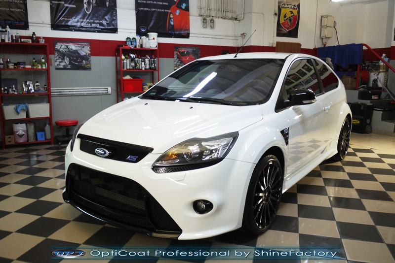 Dziś zapraszamy do obszernej fotorelacji z prac nad wyjątkową wersją Forda Focus’a czyli wersją RS! Świeżo po zakupie, właściciel powierzył nam auto w celu doprowadzenia do ponownego salonowego stanu oraz możliwie najlepszego zabezpieczenia ceramicznego. Focus przeszedł nasz najszerszy pakiet prac dlatego też zaczęliśmy od detailngu felg i nadkoli oraz dogłębnego oczyszczenia lakieru z mnóstwa naleciałości jak smoła, soki z drzew, opiłki metaliczne itp itd. Następnie przystąpiliśmy do najbardziej czasochłonnego i najważniejszego etapu prac czyli korekty piekielnie zniszczonego lakieru, usunęliśmy wszelkie niedoskonałości, bardzo mocne zmatowienie czy mikrorysy, po kilku dniach prac nabrał idealnego wyglądu oraz był gotowy do zabezpieczanie powłoką ceramiczną. Finalnie zastosowaliśmy wyjątkową powłokę 9H+ Optimum OptiCoat Professional potwierdzoną testami TUV zaaplikowaną w natryskowy sposób, pokrywając ją dla maksymalnego połysku warstwą GlossCoat. Oczywiście zajęliśmy się także zabezpieczeniem pakietem powłok wszelkich innych elementów jak szyby, felgi, elementy nielakierowane, klosze lamp itp itd. Nie zapomnieliśmy także o dokładnym detailingu wszelkich elementów wnętrza (pranie, czyszczenie alkantary oraz wszelkich el. plastikowych/winylowych), bagażnika oraz całej komory silnika. Po kilkudziesięciu godzinach pracy kilku osób auto nabrało perfekcyjnego wyglądu oraz najlepszej z możliwej ochrony dzięki czemu wzmocniony lakier na wiele lat będzie lśniąco biały. Zapraszamy do bardzo szerokiej fotorelacji!