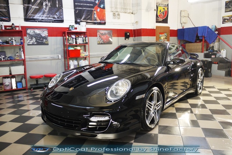 Witamy w naszej 400 fotorelacji!!! Tym razem zapraszamy do relacji z przeprowadzenia pełnego pakietu prac nad przepięknym Porsche 911 w wersji Turbo. Nad autem pracowaliśmy wiele godzin, czarny lakier posiadał bardzo dużo niedoskonałości z którymi po kroku walczyliśmy aby doprowadzić auto do perfekcji. Rozpoczęliśmy od detailingu nadkoli, wnętrza felg oraz dokładnego i dogłębnego oczyszczenia nadwozia. Następnie zabraliśmy się za wielogodzinną ciężką korektę mocno zniszczonego lakieru, w efekcie czego udało się doprowadzić go oraz inne elementy do ideału i osiągnąć perfekcyjny finalny wygląd. Następnie całe auto (szyby,lakier,felgi itp) pokryliśmy pakietem powłok ceramicznych/kwarcowych, sam lakier najgrubszą natryskową warstwą ceramiki Optimum OptiCoat Professional, testowana przez TUV oraz dodatkową warstwą GlossCoat. Także i wnętrze zostało poddane wielogodzinnemu detailingowi, oczyszczone i zabezpieczone w każdym detalu wraz ze skórami i wypraniem wszystkich jasnych materiałów. Nie zapomnieliśmy o komorze silnika. Dzięki takiemu pakietowi prac Porsche nabrało idealnego wyglądu, olśniewającego efektu wizualnego oraz solidnej ochrony. Zapraszamy do bardzo szerokiej fotorelacji!