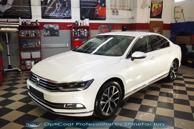 Dziś zapraszamy do fotorelacji z prac nad VW Pasatem najnowszej generacji. Właściciel powierzył nam auto w celu możliwie najlepszego zabezpieczenia ceramicznego oraz renowacji zniszczonego lakieru. Prace rozpoczęliśmy od dogłębnego oczyszczenia z wszelkich naleciałości, następnie przystąpiliśmy do najbardziej czasochłonnego i najważniejszego etapu prac czyli wielostopniowej korekty bardzo zniszczonego lakier, usunęliśmy wszelkie niedoskonałości i zmatowienie, po kilku dniach prac nabrał idealnego wyglądu oraz był gotowy do zabezpieczanie powłoką ceramiczną. Finalnie zaaplikowaliśmy bardzo grubą warstwę powłoki 9H+ Optimum OptiCoat Professional potwierdzoną testami TUV zaaplikowaną w natryskowy sposób, pokrywając ją dla maksymalnego efektu wizualnego powłoką GlossCoat. Oczywiście zajęliśmy się także zabezpieczeniem pakietem powłok wszelkich innych elementów jak szyby, felgi, elementy nielakierowane itp itd. Pakiet powłok zapewnił idealny wygląd, ochronę przed warunkami drogowymi, zminimalizowane brudzenie oraz ułatwi do maksimum łatwość mycia nawet samą wodą. Zapraszamy do bardzo szerokiej fotorelacji!