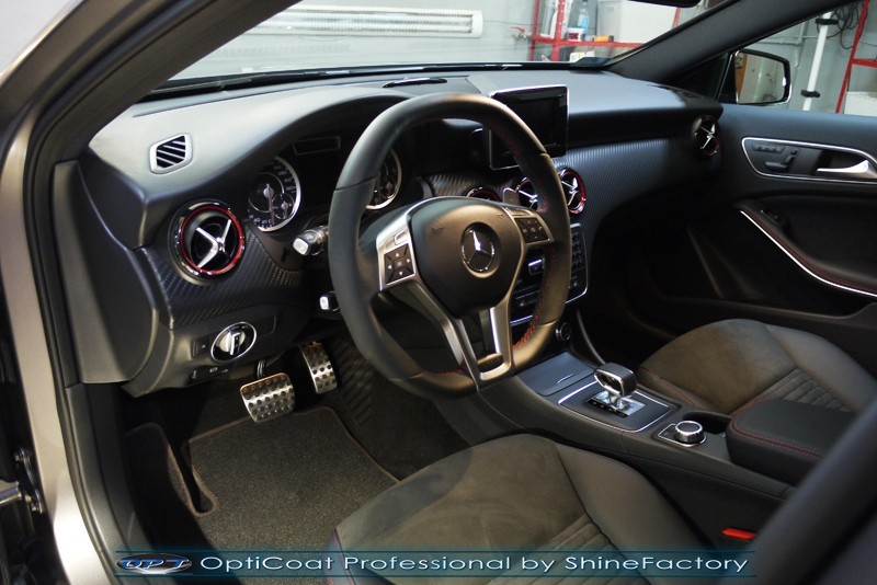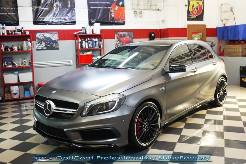 Kolejny raz mieliśmy przyjemność pracować z matowym lakierem z palety Mercedesa. A45 AMG zostało nam powierzone z niewielkim przebiegiem w celu zabezpieczenia lakieru oraz wszelkich innych elementów auta pakietem powłok ceramicznych. Matowa powłoka jest szczególna, wymaga bardzo delikatnego i specjalistycznego podejścia, wszystkie kosmetyki muszą być odpowiednie oraz dostosowane do tego typu lakieru. Bardzo ważna jest odpowiednia pielęgnacja od pierwszych kilometrów, ponieważ nie pozwala on na żadną renowację czy usunięcie wżerów. Zaczęliśmy od specjalnego dogłębnego oczyszczenia nadwozia z wszelkich naleciałości drogowych które pojawiły się już po niewielkim przebiegu, następnie skorygowaliśmy niedoskonałości z wszystkich el. lakierowanych czy kloszy lamp. Finalnie całe auto zostało pokryte ceramiką OptiCoat Professional SiC certyfikowaną przez TUV, która nadała pięknego satynowego wyglądu oraz mocnej ochrony na następne lata użytkowania. powłoki zaaplikowaliśmy także na szyby, felgi, plastiki itp itd. Nie zapomnieliśmy także zdjąć z auta kół aby zabezpieczyć lakierowane zaciski oraz o wnętrzu, które zaimpregnowaliśmy wraz ze skórami/alkantarą kosmykami najwyższej klasy. Zapraszamy do fotorelacji.