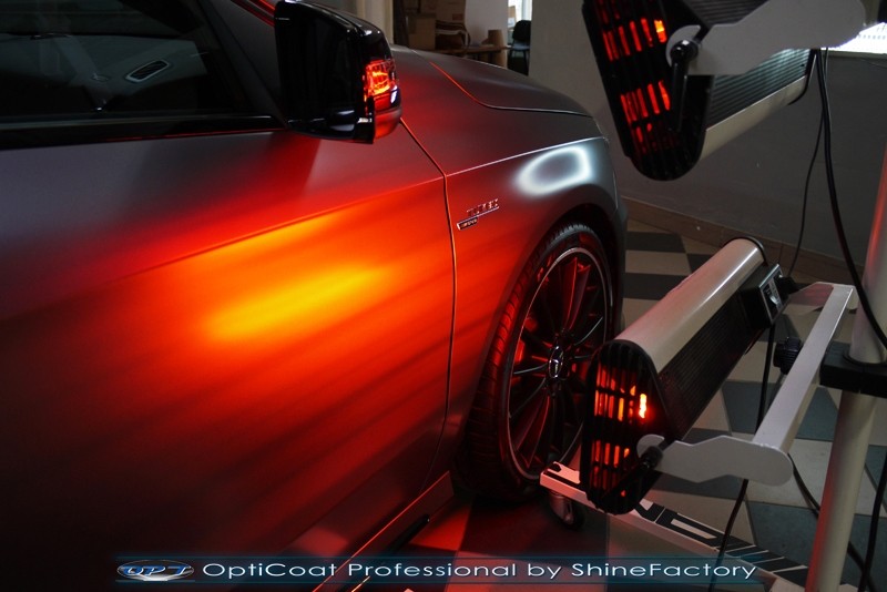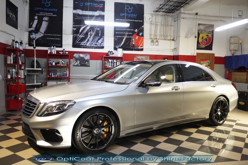 Właściciel powierzył nam swoje praktycznie nowe auto jakim jest luksusowy Mercedes klasy S w wersji AMG pokryty bardzo delikatnym matowym lakierem. Wymagane było maksymalnie dobre zabezpieczenie każdego detalu auta w pakiecie NewShine. Zdecydowaliśmy się zabezpieczyć każdy element auta (szyby, chromy, felgi, klosze lamp, detale itp) najlepszymi powłokami ceramicznymi/kwarcowymi z rynku, sam lakier najgrubszą natryskową testowaną w laboratoryjny sposób przez TUV powłoką ceramiczną OptiCoat Professional. Oczywiście najpierw auto musiało zostać w specjalistyczny sposób dokładnie oczyszczone i poprawnie przygotowane pod aplikację powłoki. Następnie po precyzyjnym natryskowym zaaplikowaniu powłoki OC PRO lakier pokryliśmy dodatkową warstwą GlossCoat która zapewniła maksymalny efekt działania, śliskość lakieru na wiele lat. Finalnie pakiet powłok został wygrzany w odpowiedniej temperaturze lampami IR. Osobnym rozdziałem był detailing niesamowitego pięknego wnętrza, które zostało zabezpieczone różnymi kosmetykami w najdrobniejszym detalu wraz z zaimpregnowaniem delikatnych skór. Nie zapomnieliśmy, także o zabezpieczeniu nadkoli, wnętrza felg czy komory silnika. Mercedes po kilku dniach prac nabrał maksymalnej możliwej ochrony co zapewni zminimalizowane brudzenie oraz banalne utrzymanie auta w perfekcyjnym stanie na wiele lat. Zapraszamy do szerokiej fotorelacji i zdjęć efektu końcowego!