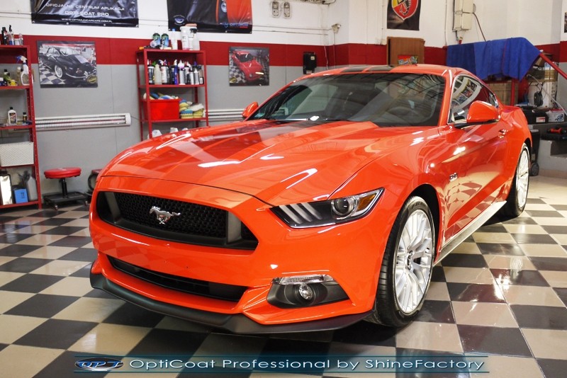 Witamy! Ponownie mieliśmy okazję zabezpieczyć pakietem powłok ceramicznych nowego Mustanga GT, tym razem w wyjątkowym pomarańczowym kolorze. Właściciel świadomy delikatności ówczesnych lakierów powierzył nam swoje nowe auto w celu ocho0rny całego nadwozia pakietem jak najmocniejszych powłok ceramicznych przed warunkami drogowymi, wżerami czy uszkodzeniem w trakcie mycia codziennego. Nasz szeroki pakiet NewShine rozpoczęliśmy od zdjęcia z auta kół w celu detailingu nadkoli, felg oraz zacisków hamulcowych. Następnie wieloetapowo oczyściliśmy całe nadwozie z wszelkich naleciałości. Po inspekcji usunęliśmy już powstałe uszkodzenia jak wżery w delikatnym lakierze od rozkładających owadów czy mikrorysy powodujące powolne matowienie pięknego lakieru. Po doprowadzeniu do ideału oraz odtłuszczeniu, całe auto (lakier, szyby, felgi itp) pokryliśmy pakietem powłok ceramicznych w innowacyjny natryskowy sposób umożliwiając uzyskanie jak najgrubszej warstwy ceramiki OptiCoat Professional + GlossCoat opartym na SiC. Dzięki temu otrzymaliśmy perfekcyjny efekt wizualny, połysk, głębie lakieru a przede wszystkim ochronę i zminimalizowane brudzenie. Nie pominęliśmy komory silnika V8 czy też wnętrza które zostało zaimpregnowane kosmetykami najwyższej ligi wraz z delikatnymi skórami. Zapraszamy do fotorelacji.