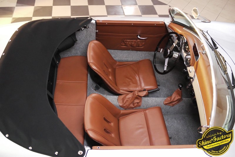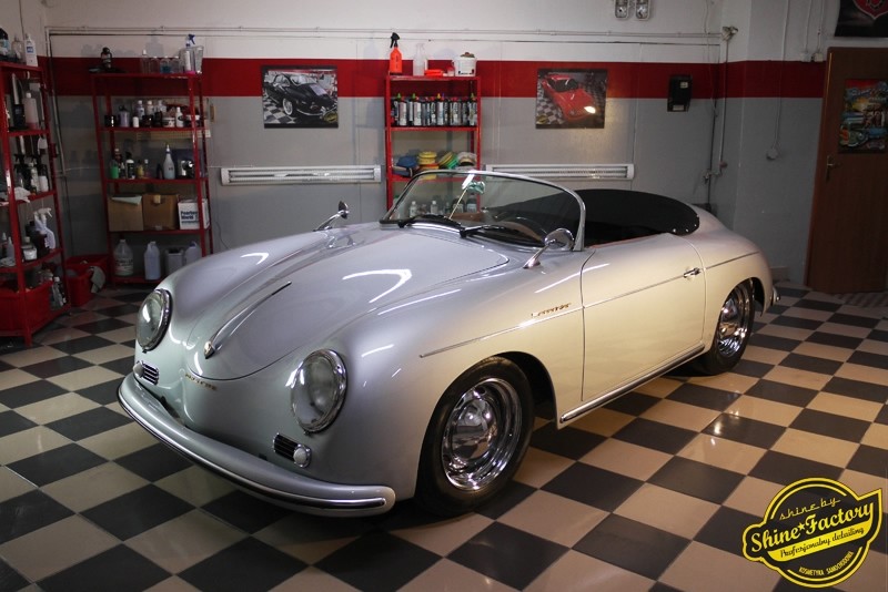 Witamy Was ponownie! Tym razem pragniemy zaprosić Państwa do fotorelacji z prac nad bardzo szczególnym autem, Porsche 356 Speedster. Auto niewielkich rozmiarów wymagało od bardzo dużego nakładu prac. Musieliśmy się zająć bardzo dużą ilością detali takich jak spolerowanie bardzo zniszczonych chromów, bardzo dużo zaprawek (które wymagały wcześniejszego szpachlowania), podgrzania i włożenia na swoje miejsce gum ze zderzaków, wyjęcia reflektorów i poprawienia ich uszczelnień itp itd.. Po tych czynnościach mogliśmy zająć się lakierem, który jak sami Państwo zobaczycie był w stanie fatalnym, cały zmatowiały od rys, po wielogodzinnej korekcie udało się nam doprowadzić go do perfekcji. Oczywiście zajęliśmy się także wnętrzem które zostało oczyszczone w każdym detalu, tapicerka materiałowa wyprana a skórzana oczyszczona i zaimpregnowana. Osobno został oczyszczony i zaimpregnowany dach cabrio. Auto po kilku dniach prac, bez wątpienia zmieniło się nie do poznania. To i wiele wiele więcej zobaczycie Państwo z fotorelacji. Zapraszamy serdecznie.