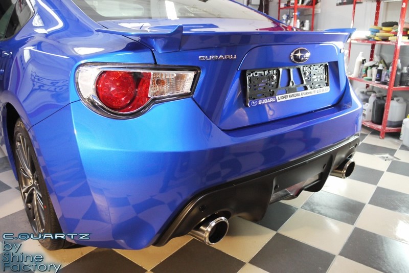 Witamy i tym razem zapraszamy do fotorelacji z zabezpieczenia nowego Subaru BRZ. Właściciel po odebraniu auta z salonu postanowił zabezpieczyć jego lakier jak i inne elementy auta. Przed zabezpieczeniem konieczne było oczyszczenie całego auta z fabrycznych zabezpieczeń oraz delikatna korekta lakieru ponieważ posiadał on delikatne niedoskonałości i lekkie zmatowienie. Po korekcie lakier Subaru w pięknym niebieskim kolorze WR Blue, tak charakterystycznym dla japońskiej marki, nabrał wyrazistości i głębi koloru, wzmocnił się także mocny metalik. Natomiast po zabezpieczeniu powłoką kwarcową oraz zadbaniu o każdy detal, lakier nabrał połysku i najlepszego zabezpieczenia a całe auto wyśmienitego wyglądu. Zajęliśmy się także wewnętrzną stroną felg oraz komorą silnika. Najlepiej zobaczcie to sami.