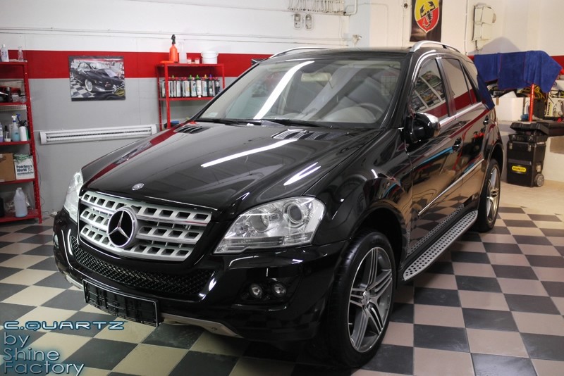 Witamy. Dziś pragniemy pokazać Państwu obszerną relację z prac nad Mercedesem ML. Właściciel przyprowadził do nas auto niedługo po zakupie. Na aucie przeprowadziliśmy pełen pakiet prac, jednak najbardziej pracochłonną czynnością była rewitalizacja okropnie zniszczonego lakieru. Przeprowadziliśmy pełną korektę porysowanego i zmatowiałego maksymalnie lakieru, finalnie zabezpieczając go powłoką kwarcową, uzyskując tym lustrzane odbicie, maksymalny połysk oraz wyraźne ziarno metaliku. Zajęliśmy się także wnętrzem które w każdym detalu, wraz ze skórą, zostało oczyszczony i zabezpieczony odpowiednimi kosmetykami. Nie zapomnieliśmy o komorze silnika czy wnętrzu felg/nadkolach. Po zajęciu się mnóstwem innych detali jak chromy, końcówki wydechu, szyby, lampy itp itd. auto nabrało idealnego wyglądu. Zapraszamy do relacji.