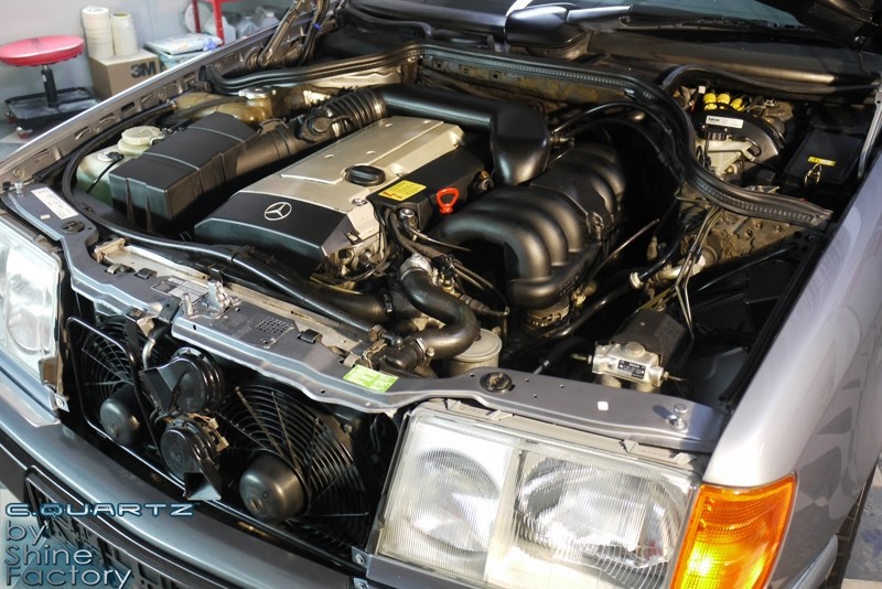 Dziś chcemy zaprosić Was do obejrzenia krótkiej fotorelacji z prac nad Mercedesem W124 Coupe. Auto jest oczkiem w głowie właściciela, który postanowił polakierować auto ponownie. Niestety po lakierowaniu auto dalej nie miało połysku, sam lakier był nieprzejrzysty z widocznymi ewidentnymi zmatowieniami i rysami. Naszym zadaniem było doprowadzić do perfekcji lakier oraz zabezpieczyć go powłoką kwarcową. Przez kilka dni auto było poddawane korekcie, finalnie zostało zabezpieczone powłoką permanentną, zdaliśmy także o wszelkie inne detale jak szyby, chromy czy koła auta. Zajęliśmy się także komorą silnika. Efekt końcowy możecie zobaczyć sami. Zapraszamy.
