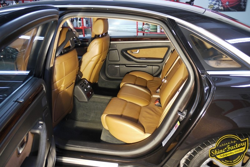 Witamy i zapraszamy do relacji z prac nad Audi A8 Long. Pierwszorzędnie oczyściliśmy dokładnie nadwozie, następnie przeprowadziliśmy korektę bardzo mocno zniszczonego lakieru. Po korekcie lakier nabrał klarownego i przejrzystego wyglądu oraz połysku, co w połączeniu ze znakomitym woskiem Swissvax Concorso dało niesamowity efekt wizualny. We wnętrzu głównym celem było oczyszczenie i impregnacja skór. Zapraszamy do pełnej relacji.