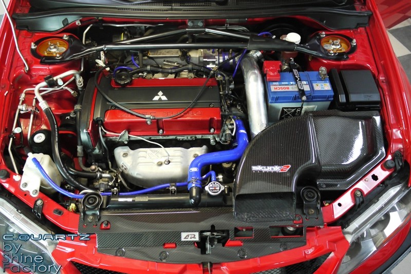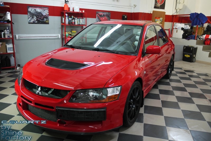 Witamy Was serdecznie. Tym razem zapraszamy na obszerną relacje z prac nad pięknym czerwonym Mitsubishi Lancer Evolution serii 9. Nad autem spędziliśmy kilka dni, w tym czasie dokładnie oczyściliśmy auto z wszelkich ciężkich zanieczyszczeń jak smoła i asfalt, ściągnęliśmy z samochodu koła aby dostać się do nadkoli i wnętrza felg. Przeprowadziliśmy korektę bardzo zmatowiałego i porysowanego lakieru dzięki czemu zyskał krwisty czerwony wygląd. Finalnie został zabezpieczony powłoką kwarcową. Całe wnętrze zostało oczyszczone i zabezpieczone w każdym detalu, alkantara i boczki foteli oczyszczone i zaimpregnowane. W komorze silnika spolerowaliśmy karbonowy dolot oraz zmęczona osłonę kolektora wydechowego, reszta został oczyszczona i zabezpieczona. Zgodnie z prośba właściciela zdjęliśmy z auta także ogromną płytę z włókna która chroni silnik, całą oczyściliśmy a front został spolerowany. Po zajęciu się nip/anbsp;ezliczoną liczbą inn/pych detali na zewnątrz auto nabrało nowego wyglądu. Zapraszamy.
