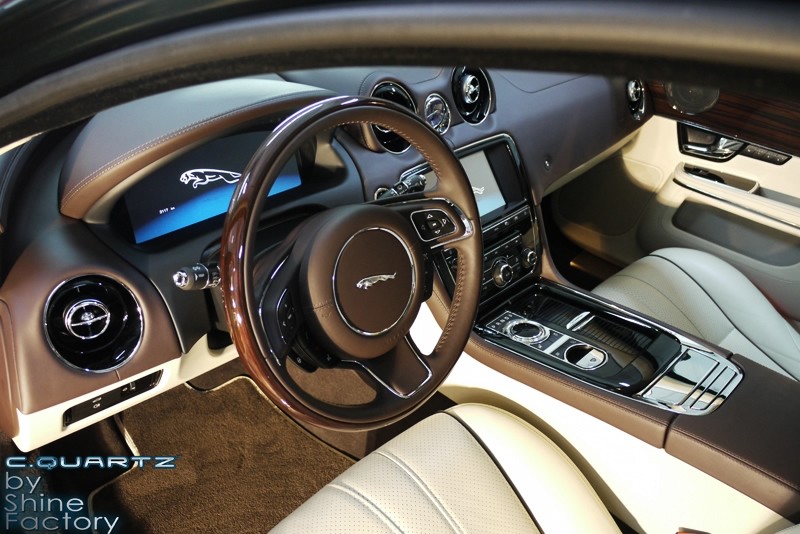 Witamy ponownie! Jakiś czas temu mieliśmy przyjemność zabezpieczyć jak najdokładniej nowego Jaguara XJ. Zajęliśmy się wszelkimi detalami wewnątrz jak i na zewnątrz auta. Felgi zostały zabezpieczone trwałym woskiem od wewnątrz, nadkola odpowiednimi środkami, komora silnika specjalnym preparatem. We wnętrzu zajęliśmy się całą skórzaną tapicerką, wszelkimi elementami deski rozdzielczej oraz wieloma innymi detalami. Lakier miał być zabezpieczony jak najlepiej dlatego otrzymał powłokę kwarcową. Niestety choć auto było całkowicie nowe, lakier po salonowych zabiegach, musiał ulec korekcie lakieru aby odzyskał swój prawidłowy wygląd, po czym ukazało się piękno lakieru British racing green. Zapraszamy do relacji i zdjęć z końcowego efektu.