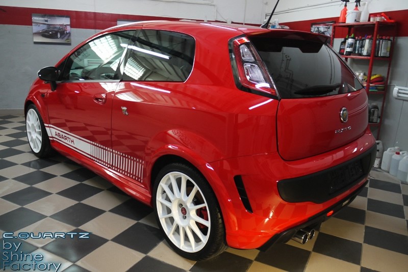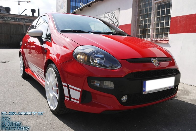 Witamy ponownie! Dziś chcielibyśmy zaprosić Państwa do zobaczenia pełnej fotorelacji z prac nad czerwonym Abarthem Punto Evo. Auto przeszło u nas pełen pakiet pracy. Zaczęliśmy od ściągnięcia kół w celu oczyszczenia i zabezpieczenia nadkoli oraz felg od wewnątrz. Po dogłębnym oczyszczeniu lakieru przeprowadziliśmy korektę lekko zmatowiałego lakieru w celu uzyskania maksymalnie krwistej czerwieni. Lakier został zabezpieczony finalnie powłoką kwarcową która dała ostateczny połysk oraz ochronę. Zajęliśmy się także kompleksowo wnętrzem auta oraz komorą silnika. Oczywiście nie umknęły nam wszelkie inne detale jak końcówki wydechu, opony, szyby, elementy plastikowe itp itd. Zapraszamy do pełnej relacji gdzie sami Państwo będziecie mogli zobaczyć zdjęcia z pracy jak i ostatecznego efektu.